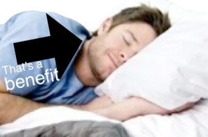 Unfortunately, consumers don’t share that unconditional love.  They’re interested in one thing: “What’s in it for me?”  Instead of the nuts and bolts and special glue that go into the make-up, they’re interested in how the product will actually improve their lives.
