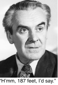 When I lived in Manchester I often used to see a well-dressed man who would walk around town in an ordinary manner until he came to an office block or public building on a street corner.  Then, with great drama, he would drop to one knee, stare up and stretch out his arms vertically as if he were gauging the height of the building with an invisible tape measure. Then he’d get up, nod and carry on, only to fling himself into the same procedure at the next junction.  He became a familiar sight, and was inevitably known as John le Measurer.